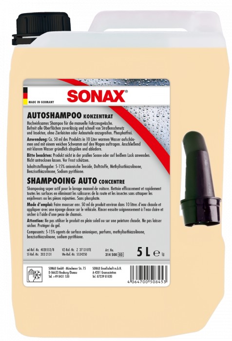 SO314500 / 314500 Kézi mosáshoz készült, rendkívül hatékony tisztító koncentrátum. Gyorsan és alaposan feloldja a tipikus közúti szennyeződéseket, ugyanakkor maximálisan kíméli a kezelt felületet. Foszfátmentes. A termék biztonsági adatlapja bejelentkezés után érhető el.